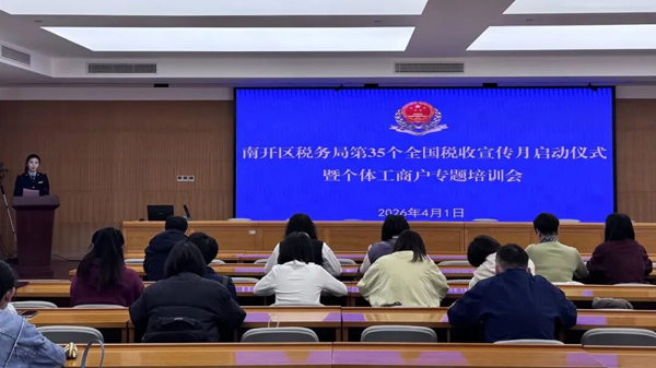 南开区税务局 国家税务总局天津市南开区税务局围绕“税收·法治·公平”主题,组织召开第35个全国税收宣传月启动仪式暨个体工商户专题培训会,辖区内众多个体工商户代表受邀参加本次活动。此次活动以全国税收宣传月为契机,旨在精准传递税费政策,提升个体工商户办税实操能力,助力辖区个体经济健康稳步发展,营造更加公平、法治、富有活力的营商环境。
