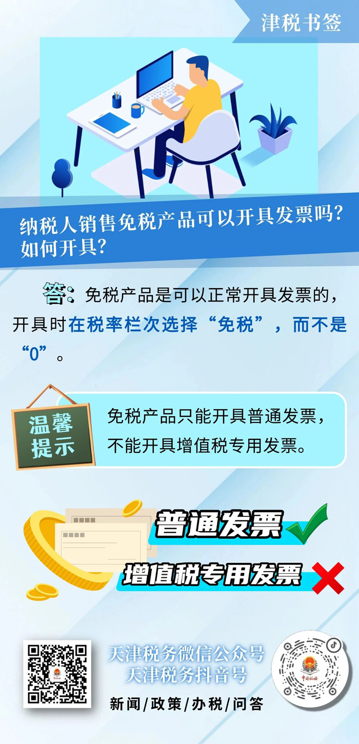标题 【津税书签】纳税人销售免税产品可以开具发票吗?如何开具?