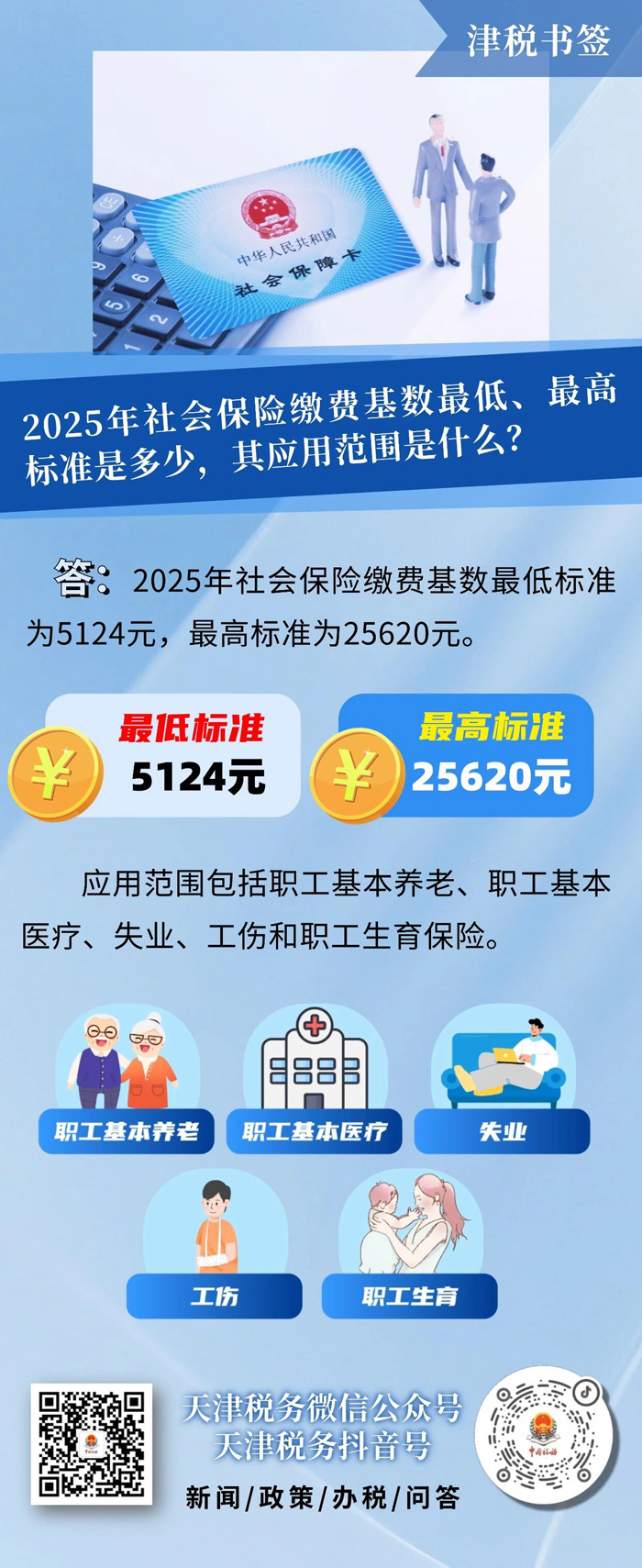 【津税书签】2025年社会保险缴费基数最低、最高标准是多少,其应用范围是什么?