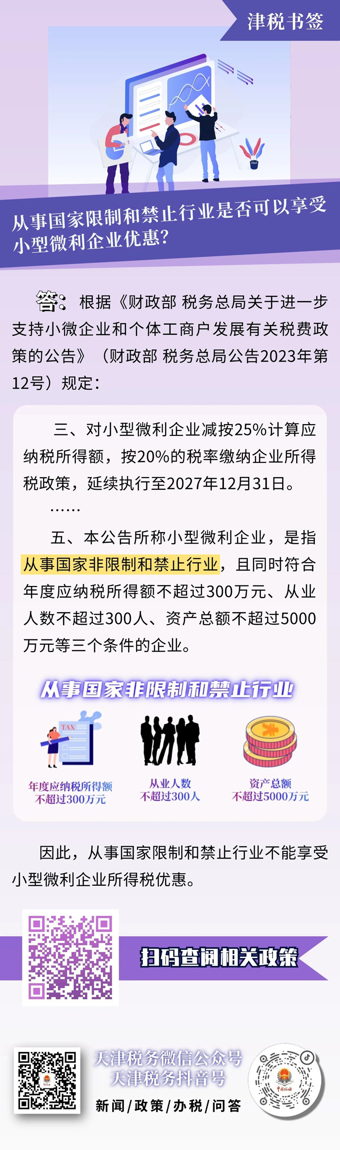 【津税书签】从事国家限制和禁止行业是否可以享受小型微利企业优惠?