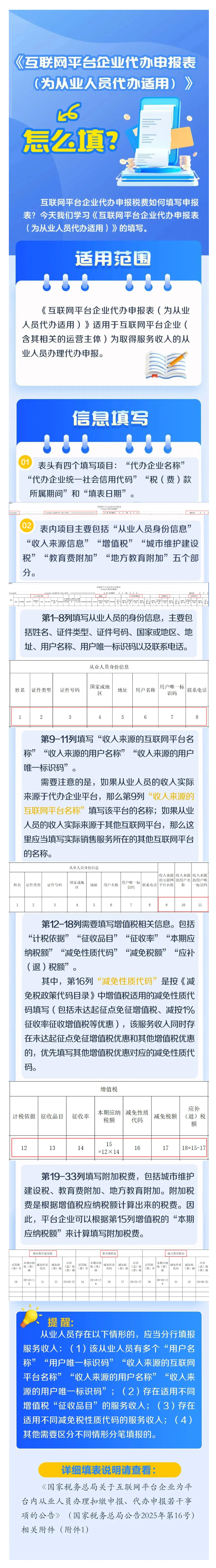 国家税务总局关于互联网平台企业为平台内从业人员办理扣缴申报、代办申报若干事项的公告