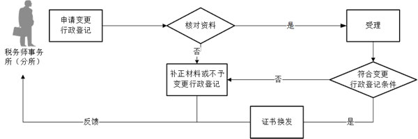 【办理地点】 电子税务局 国家税务总局天津市税务局(河北区民主道16号613室) 【办理机构】 国家税务总局天津市税务局纳税服务处 【收费标准】 不收费 【办理时间】 省税务机关自受理材料之日起15个工作日内办理税务师事务所变更行政登记。 【联系电话】 022-24465634 022-12366 【办理流程】