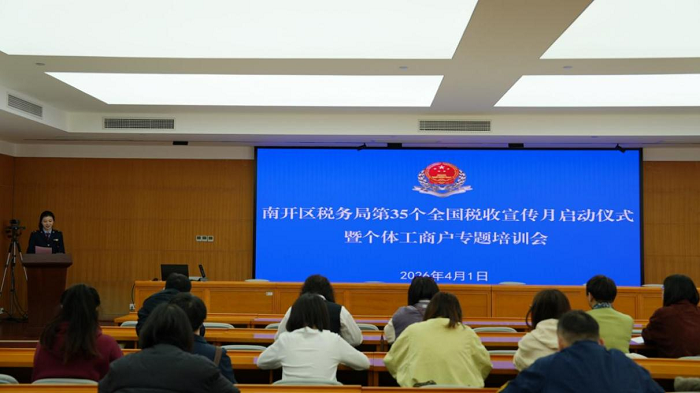 4月1日,南开区税务局围绕“税收·法治·公平”主题,面向辖区内众多个体工商户开展专题培训,邀请其共同启动第35个全国税收宣传月。此次活动旨在精准传递税费优惠政策,提升个体工商户办税实操能力,助力辖区个体经济健康稳步发展,营造更加公平、法治、富有活力的营商环境。