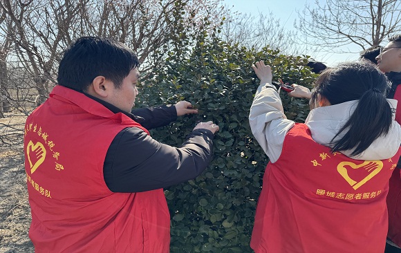 春意渐浓,志愿林里一棵棵苗木已抽枝发芽,正迎风招展。专家讲解苗木抚育管护要点后,志愿者们有的戴上手套清理绿地,有的拿起剪刀修剪枝芽,有的两两合作浇灌苗木,护苗工作井然有序展开。经过两个小时的共同努力,一片苗木在精心抚育下愈显蓄势向上、生机勃勃。“看着自己过往亲手种下的树苗如今茁壮成长,还可以再给它修剪一下枝芽,浇灌一些水,还是挺有成就感的”同时参与过往年植树、今年护苗活动的干部由衷感慨道。 抚育苗木如同培养干部,都需要绵绵用力、久久为功。生态城税务局将持续深入践行习近平总书记关于青年工作和生态文明建设的重要指示精神,不断将青年干部培养与城市文明建设有机融合起来,为生态城文明发展持续贡献税务青春力量。