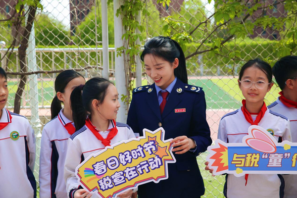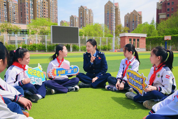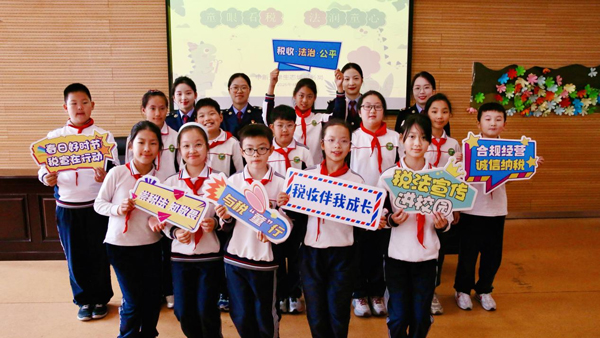 为厚植青少年税收法治理念,鼓励青少年学习税法、了解税法、宣传税法,4月21日上午,国家税务总局中新天津生态城税务局组织普法志愿服务队,走进天津外国语大学附属滨海外国语学校小学一部,开展“税收普法进校园”主题宣传活动,把税法知识送进课堂,让法治春风浸润校园。