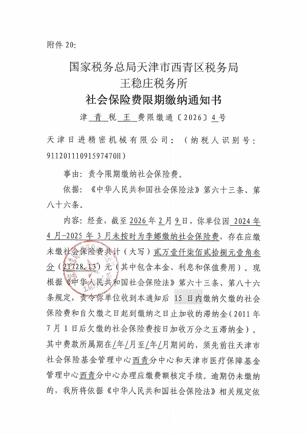附件:《社会保险费限期缴纳名册》