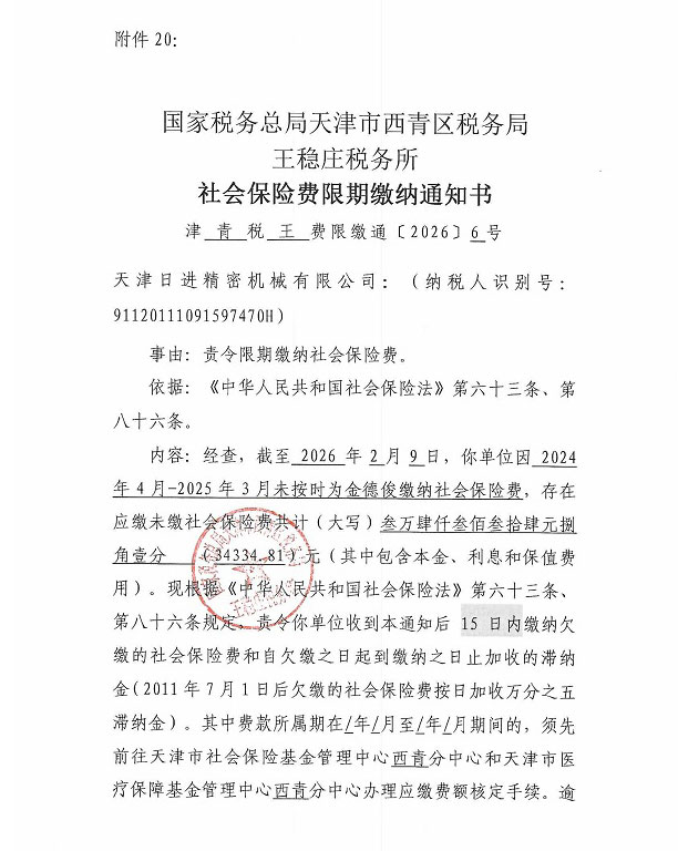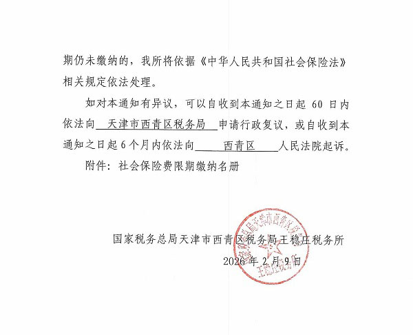 附件:《社会保险费限期缴纳名册》