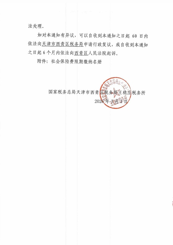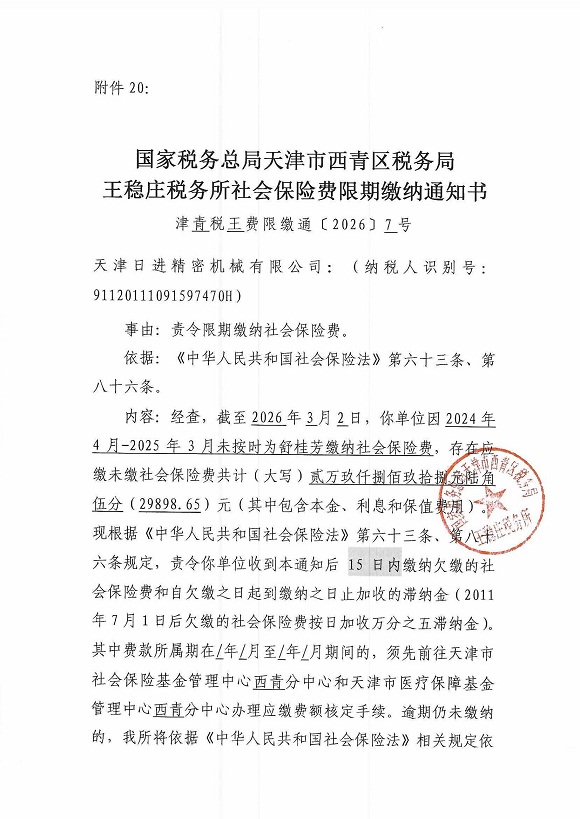 附件:社会保险费限期缴纳名册 |