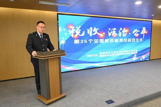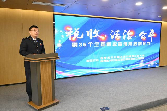 春光为序,税宣如约。4月1日,国家税务总局天津市津南区税务局联合国家税务总局天津市税务局第五稽查局,在天开高教科创园津南园举行第35个全国税收宣传月启动仪式,与海教园管委会、津南区政务服务办、津南区总工会和园区科创企业代表,一同共话税收法治、共护公平秩序。 启动仪式上,津南区税务局党委书记、局长王海勇和天津市税务局第五稽查局副局长李玉龙进行致辞。王海勇围绕“税收·法治·公平”的主题,介绍了津南区税务局办税服务厅改造升级进展,以及将在税收宣传月期间组织开展的系列活动,表示税务部门将持续优化执法方式、完善服务举措、强化合规引导,全力建设法治公平的税收营商环境。同时向活动现场的企业代表发出倡议,希望其在将诚信纳税、合规经营作为企业核心竞争力的基础上,带头依法履行纳税义务、自觉抵制违法行为,共同营造崇尚法治、恪守规则、尊重契约、维护公正的良好氛围。李玉龙深刻剖析纳税信用的重要意义,结合税务稽查工作职能,表示将以“稽查+征管”联动形式推出特色活动,促进税法遵从自觉,护航经济社会高质量发展。
